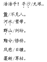 解析 这一训练着重强调对文中诗句的朗读。课文在第三部分引用了《吊古战场文》,因为诗句中生字较多,所以朗读这部分内容时,首先要做到正确、流利,然后再结合文意将其读得有感情。《吊古战场文》是一篇文言文,描述了古战场荒凉凄惨的景象,揭示了战争的残酷以及给人民造成的苦难,朗读时,语速慢些,注意停顿,要读得悲壮些。