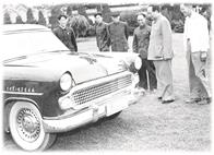 的中国第一辆轿车的图片以及毛主席在北京中南海后花园参观汽车时的图片。