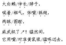 (2)大白鹅面对黄鼠狼逃走的方向,引颈高叫了两声,好像一位得胜的将军。