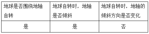 (3)√ 解析:地球的自转轴北端基本上都指向北极星,而北极星不在我们头顶正上方,说明地球的自转轴是倾斜的,并且保持倾斜方向不变。
