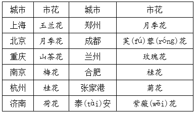 2.中国部分城市的市花: