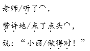 解析 本课中人物对话较多,朗读时要结合每个人物的特点读出不同人物的语气。例如读老师的话要和蔼亲切,语速要稍慢,在表扬小丽的做法时,声音要加重,要用赞赏的语气;读玲玲的话语调要稍高,要用好奇询问的语气;读小丽的话要用坚定的语气;读小龙的话要轻快活泼,读出可爱的语气。