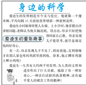 欢 欢:有一次,我目睹了惊险的一幕,也从中学到了一些科学知识。那天,妈妈在厨房炒菜,我在旁边洗柿子。妈妈把火打开,向锅内倒了一些油,便去拿铲子,可没拿住,铲子掉在了地上。妈妈捡起铲子去洗。这时锅里已经着了火。我急了,拿盆就要去接水。妈妈一把拉住我,拿来锅盖盖在锅上,很快火就熄灭了。我问妈妈为什么不用水浇,妈妈说:“水倒进滚开的油里就会溅出来,火苗也会一起溅出来,会造成火灾的。盖上锅盖,隔绝了空气,没有了空气,火自然就灭了。”