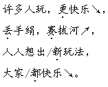 解析 每一小节的结构基本一样,前三个小节的前两行,都是先说几个人玩,怎么快乐,接着说这样玩的特点,后两行是具体的玩法举例。只要记住这个结构就能很快背诵下来了。