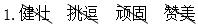 隐蔽 嫉妒 清澈 伶俐 凄凉 摔跤