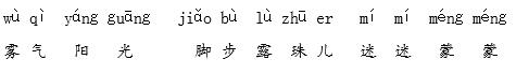 解析 这七个词语都是课文中的原词,读词语时,要读准字音,注意“露珠儿”的儿化音读法,读成lù zhū er;“蒙”是多音字,在这个词语中读ménɡ;“眨”是翘舌音;“呀”读轻声。在理解词语的基础上多读几遍,积累下来。
