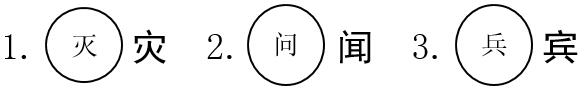 客(客人) 实(实在) 名(名字) 闻(闻名)