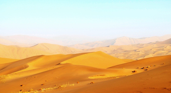 指地面完全为沙所覆(fù)盖,缺乏流水,气候干燥(zào),植物稀少的地区。地表不仅覆盖大片流沙,还广布各种沙丘。在风力推动下,沙丘不时移动,往往埋没农田、村镇、道路,造成危害。我国沙漠主要分布在新疆的塔克拉玛干、柴达木以及内蒙古境内。