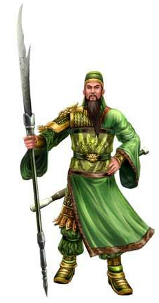 关羽(?—220),刘备义弟,三国蜀汉大将。字云长,本字长生,河东解县(今山西省临猗西南)人。因战乱而逃亡至涿郡。其后与张飞一起追随刘备。官渡之战前被俘(fú),被曹操封为汉寿亭侯,后回到了刘备身边。建安二十四年,围攻曹仁于樊(fán)城,水淹七军,收降曹操大将于禁,杀庞德。终因骄傲轻敌,刚愎(bì)自用,兵败麦城,被孙权所杀。关羽一生重情义,智勇双全,武艺绝伦。