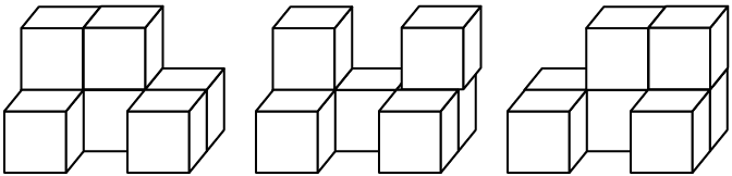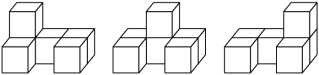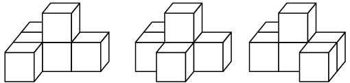 ,可以推出后排有两层,前排有一层。后排第二层的小正方体可以有一个,两个或三个。当后排第二层有一个小正方体时有三种摆法,如图所示:
