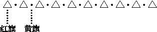 分析:先画10面红旗,红旗用△代替,再在两面红旗之间插一面黄旗,即在△之间插入一面黄旗,黄旗用·代替。如图: