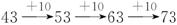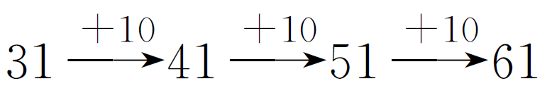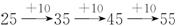 根据排列规律可知(1)(2)(3)组中的数,后一个数比前一个数大10;(4)组中的数,后一个数比前一个数大5。
