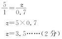 分析:本题考查了解比例的综合运用,同时考查了学生的观察能力。首先观察图形,红色纸条5 m对应着1,所以可根据已知条件写出比例,再解比例就能求出纸条的长度了。
