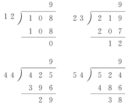 发现:被除数和除数最高位上的数相同,并且被除数的前两位比除数小。这些题的商都是9。