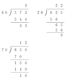 10.第1小题填1~4时,商是一位数;填5~9时,商是两位数。