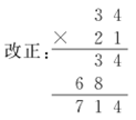 2.第1小题计算顺序错误,应先用个位上的“1”乘34,得34。