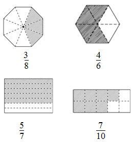 1.分析:仔细观察每幅图是否符合平均分的条件及每幅图平均分的份数和给出的分数的分母是否一致。
