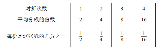发现规律:对折几次,平均分成的份数就是几个2连乘。