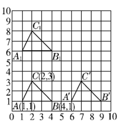 (2)向右平移5个单位后所得图形各个顶点的位置:A′(6,1),B′(9,1),C′(7,3)。向上平移5个单位后所得图形各个顶点的位置:A1(1,6),B1(4,6),C1(2,8)。通过对比发现:图形向右平移,改变了顶点所在的列,列数是原列数加平移的单位数,没有改变顶点所在的行,即数对中的第二个数没有变。图形向上平移,改变了顶点所在的行,行数是原行数加平移的单位数,没有改变顶点所在的列,即数对中的第一个数没有变。