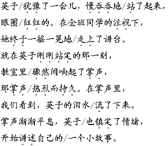 解析 本篇课文内容感人,朗读时,要体现出掌声前后的情感和语气、语调的变化,读掌声前的部分语调要低沉、缓慢一些,读掌声后的部分要活泼、欢快一些。