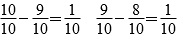 ,这是一道同分母分数减法题,只要两个分子相减等于1就可以了。因为10-9=1,9-8=1,8-7=1,7-6=1,6-5=1,5-4=1,4-3=1,3-2=1,2-1=1,1-0=1,所以有10种填法,