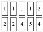 解答:(答案不唯一)只要保证卡片上的数字是“1”的张数最多,卡片上的数字是“5”的张数最少即可。如: