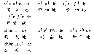 解析 同学们在读时首先要明确“地”是多音字,当它作为名词讲时,读dì,如:土地、地球、陆地、地区……而当它作助词,不表示任何意义时,读de。这里都应该读de。然后多读几遍,再试着说句子、写句子。