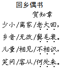 解析 《回乡偶书》写的是作者回到久别的家乡时的喜悦与感慨。首句点明是回乡之作,突出了诗人离乡之久,回乡之晚,朗读时,语速放慢一点;次句承接上句,写自己的衰老之感,抒发了自己久而愈深的乡土之情,朗读时,可以突出语调的变化,“无改”读得昂扬一点,“衰”读得起伏一些;后两句描写了儿童问话这一饶有趣味的生活场面,朗读时,要读出儿童的天真烂漫。《赠汪伦》描写的是朋友送别时的场面。前两句是叙事:李白乘船将要离去,汪伦前来送行,“将欲”要读出依依不舍之情,“忽闻”要读出意外与惊喜的语气;后两句用桃花潭的水深与汪伦对自己的深情作比较,要读得深情而饱满。同学们要多读几遍,然后达到熟读成诵。