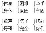 【解析】这些词语可以是课内的,也可以是课外的,只要搭配合理就行,如:“( )的小院”,可以写成“(安静)的小院”,也可以写成“(浓绿)的小院”等。