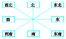 南与北相对,东与西相对,西北与东南相对,东北与西南相对。
