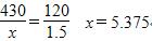 5.解:设按照这个速度,北京到济南全程需要x小时。
