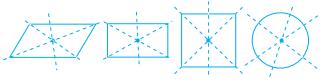 发现:经过每个图形的中心点的任意一条直线都能把这个图形分成面积相等的两部分。