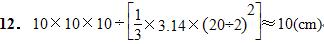 体积:20×20×20+3.14×(20÷2)2×20÷2=11140(cm3)