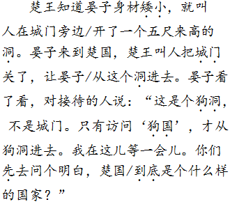 解析 本文讲述了春秋末期,齐国大夫晏子出使楚国,楚王三次侮辱晏子,想显显楚国的威风,晏子巧妙回击,维护了自己和国家尊严的故事。朗读基调是对晏子的凛然正气、爱国情怀和他高超的语言艺术的赞叹。本文适合分角色朗读,重点朗读晏子和楚王三次斗智的部分,要读出楚王的骄横、傲慢、阴险和在失败面前窘迫的语气;而晏子的语气或义正词严,或嘲弄戏耍,或诙谐反问,语气要富有变化。