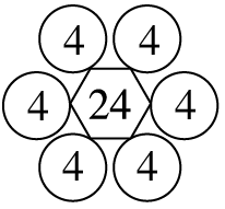 通过分析,看到36周围有4个○,40周围有5个○,24周围有6个○,因为每个数周围的○里填的是相同的数,而且○里填的数相加的和等于中间数,就是把中间的数平均分成○的个数份,那么就可以把数周围○的个数看是除数。即36÷4=9,○里填的就是9;40÷5=8,○里填的就是8;24÷6=4,○里填的就是4。